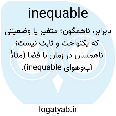 نابرابر، ناهمگون؛ متغیر یا وضعیتی که یکنواخت و ثابت نیست؛ ناهمسان در زمان یا فضا (مثلاً آب‌وهوای inequable).