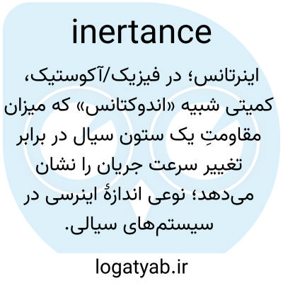 اینرتانس؛ در فیزیک/آکوستیک، کمیتی شبیه «اندوکتانس» که میزان مقاومتِ یک ستون سیال در برابر تغییر سرعت جریان را نشان میدهد؛ نوعی اندازهٔ اینرسی در سیستمهای سیالی.