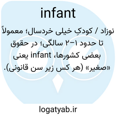 نوزاد / کودکِ خیلی خردسال؛ معمولاً تا حدود ۱–۲ سالگی؛ در حقوق بعضی کشورها، infant یعنی «صغیر» (هر کس زیر سن قانونی).