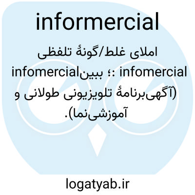 املای غلط/گونهٔ تلفظی infomercial؛ ببین: infomercial (آگهی‌برنامهٔ تلویزیونی طولانی و آموزشی‌نما).