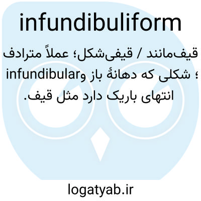قیف‌مانند / قیفی‌شکل؛ عملاً مترادف infundibular؛ شکلی که دهانهٔ باز و انتهای باریک دارد مثل قیف.