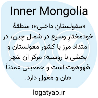 «مغولستانِ داخلی»؛ منطقهٔ خودمختارِ وسیع در شمال چین، در امتداد مرز با کشور مغولستان و بخشی با روسیه؛ مرکز آن شهر هُهوهوت است و جمعیتی عمدتاً هان و مغول دارد.
