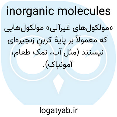 📌 مولکولهایی غیر از مولکولهای آلی (همچنین به مولکول آلی مراجعه کنید). مولکولهای معدنی عموماً ساده هستند و معمولاً در موجودات زنده یافت نمیشوند. اگرچه همه مواد آلی حاوی کربن هستند، برخی از مواد حاوی کربن، مانند الماس، معدنی محسوب میشوند.