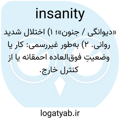 «دیوانگی / جنون»؛ ۱) اختلال شدید روانی. ۲) به‌طور غیررسمی: کار یا وضعیتِ فوق‌العاده احمقانه یا از کنترل خارج.