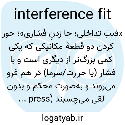«فیتِ تداخلی؛ جا زدنِ فشاری»؛ جور کردن دو قطعهٔ مکانیکی که یکی کمی بزرگ‌تر از دیگری است و با فشار (یا حرارت/سرما) در هم فرو می‌روند و به‌صورت محکم و بدون لقی می‌چسبند (press fit).