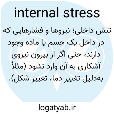📌 (در قطعات فلزی یا شیشهای یا موارد مشابه) تنشی که در اثر تغییرات حرارتی، کار انجام شده یا بینظمی ساختار مولکولی در ماده وجود دارد.