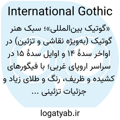 📌 سبکی از هنر گوتیک، به ویژه نقاشی، که در اواخر قرن چهاردهم و اوایل قرن پانزدهم در اروپا توسعه یافت و عمدتاً با جزئیاتی که به شیوهای ناتورالیستی با دقت ترسیم شدهاند، اشکال کشیده و ظریف مدلسازی شده، استفاده از پرسپکتیو پیچیده، و تأکید بر جنبه تزئینی یا زینتی پارچه، شاخ و برگ یا محیط مشخص میشود.