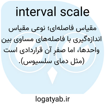 📌 آمار، مقیاسی برای اندازه‌گیری داده‌ها که بر اساس آن می‌توان تفاوت‌های بین مقادیر را به صورت مطلق اما نه نسبی، کمّی کرد و برای آن هر صفر صرفاً دلخواه است: برای مثال، تاریخ‌ها در مقیاس فاصله‌ای اندازه‌گیری می‌شوند زیرا تفاوت‌ها را می‌توان بر حسب سال اندازه‌گیری کرد، اما نمی‌توان معنایی برای نسبت زمان‌ها قائل شد. مقیاس ترتیبی را مقایسه کنید. مقیاس نسبی. مقیاس اسمی