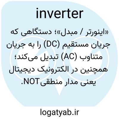 «اینورتر / مبدل»؛ دستگاهی که جریان مستقیم (DC) را به جریان متناوب (AC) تبدیل می‌کند؛ همچنین در الکترونیک دیجیتال یعنی مدار منطقی NOT.