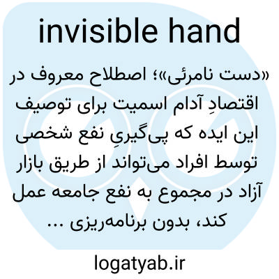 📌 (در اقتصاد آدام اسمیت) یک نیرو یا مکانیسم نامرئی که افراد را هدایت میکند تا ناخواسته از طریق پیگیری منافع خصوصی خود به جامعه سود برسانند.