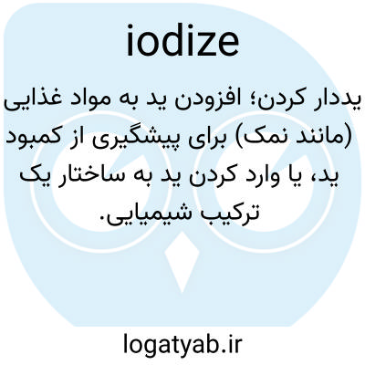 📌 با ید یا یک یدید، عملآوری کردن، آغشته کردن، یا تحت تأثیر قرار دادن.