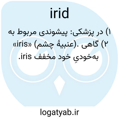۱) در پزشکی: پیشوندی مربوط به «iris» (عنبیهٔ چشم). ۲) گاهی به‌خودیِ خود مخفف iris.