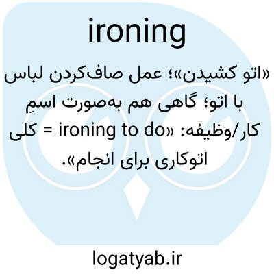«اتو کشیدن»؛ عمل صاف‌کردن لباس با اتو؛ گاهی هم به‌صورت اسمِ کار/وظیفه: «ironing to do = کلی اتوکاری برای انجام».