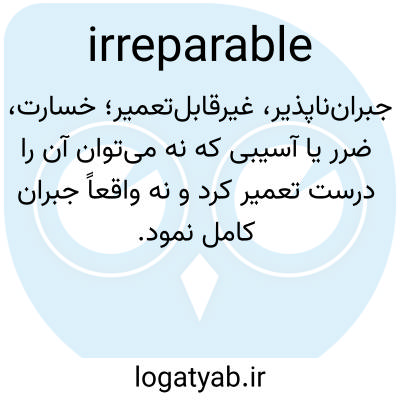 جبران‌ناپذیر، غیرقابل‌تعمیر؛ خسارت، ضرر یا آسیبی که نه می‌توان آن را درست تعمیر کرد و نه واقعاً جبران کامل نمود.