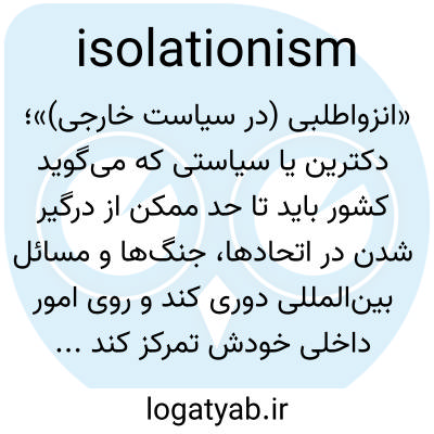 📌 سیاست یا دکترین منزوی کردن کشور خود از امور سایر ملل با خودداری از ورود به اتحادها، تعهدات اقتصادی خارجی، توافقات بینالمللی و غیره، و تلاش برای اختصاص تمام تلاشهای کشور به پیشرفت خود و حفظ صلح با اجتناب از درگیریها و مسئولیتهای خارجی.