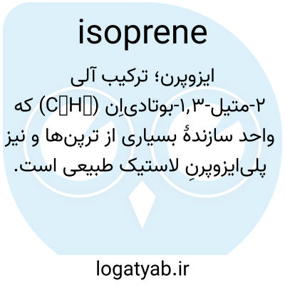 📌 مایعی بیرنگ، فرار و نامحلول در آب، با فرمول شیمیایی C5H8، از دسته ترپنها، که معمولاً از لاستیک یا از روغن تربانتین با روش پیرولیز به دست میآید: عمدتاً در ساخت لاستیک مصنوعی با روش پلیمریزاسیون استفاده میشود.