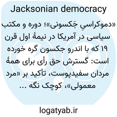 «دموکراسیِ جَکسونی»؛ دوره و مکتب سیاسی در آمریکا در نیمهٔ اول قرن ۱۹ که با اندرو جکسون گره خورده است: گسترش حق رأی برای همهٔ مردان سفیدپوست، تأکید بر «مرد معمولی»، کوچک نگه داشتن دولت فدرال، و حزب دموکراتِ اولیه.