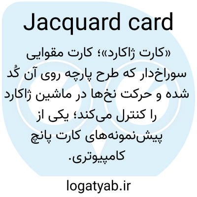 📌 (در دستگاه بافندگی ژاکارد) یکی از مجموعهای از کارتهای سوراخدار که کنترل نخهای تار را بر عهده دارند و طرح پیچیده بافته شده روی پارچه را تعیین میکنند.