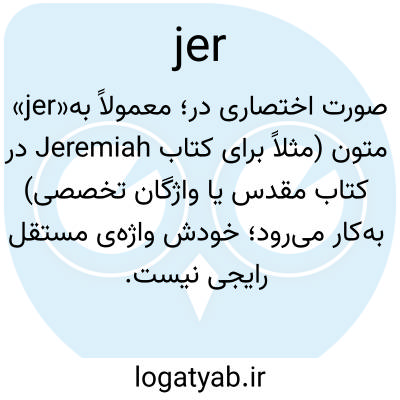 «jer»؛ معمولاً به‌صورت اختصاری در متون (مثلاً برای کتاب Jeremiah در کتاب مقدس یا واژگان تخصصی) به‌کار می‌رود؛ خودش واژه‌ی مستقل رایجی نیست.
