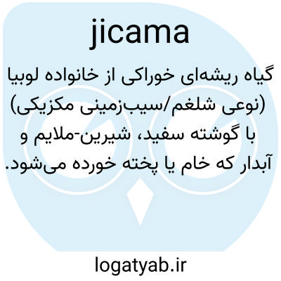 📌 ریشه بزرگ، خوراکی و غدهای یک گیاه گرمسیری آمریکایی، Pachyrhizus erosus، از خانواده حبوبات، که به عنوان سبزی به صورت خام یا آبپز مصرف میشود.