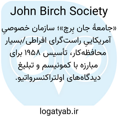 📌 یک سازمان فوق محافظهکار که در دسامبر ۱۹۵۸ توسط رابرت ولچ جونیور تأسیس شد، عمدتاً برای مبارزه با فعالیتهای ادعایی کمونیستی در ایالات متحده.