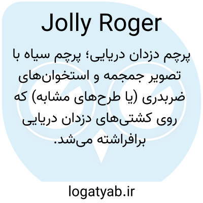 📌 پرچمی که توسط دزدان دریایی برافراشته میشود و طرح آن از یک جمجمه سفید و دو استخوان ضربدری در زمینهای سیاه تشکیل شده است.