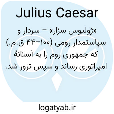 «ژولیوس سزار» – سردار و سیاستمدار رومی (۱۰۰–۴۴ ق.م.) که جمهوری روم را به آستانهٔ امپراتوری رساند و سپس ترور شد.