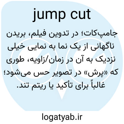 جامپ‌کات؛ در تدوین فیلم، بریدن ناگهانی از یک نما به نمایی خیلی نزدیک به آن در زمان/زاویه، طوری که «پرش» در تصویر حس می‌شود؛ غالباً برای تأکید یا ریتم تند.