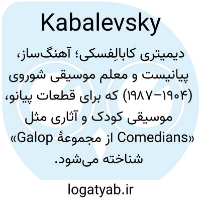 دیمیتری کابالِفسکی؛ آهنگ‌ساز، پیانیست و معلم موسیقی شوروی (۱۹۰۴–۱۹۸۷) که برای قطعات پیانو، موسیقی کودک و آثاری مثل «Galop از مجموعهٔ Comedians» شناخته می‌شود.