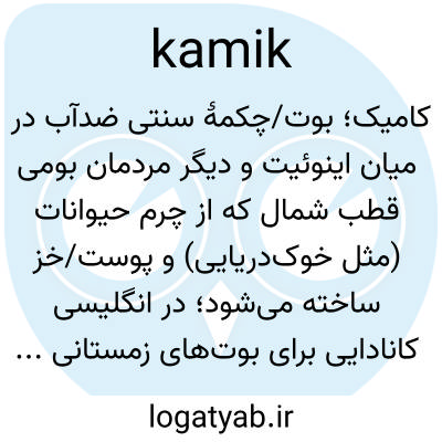کامیک؛ بوت/چکمهٔ سنتی ضدآب در میان اینوئیت و دیگر مردمان بومی قطب شمال که از چرم حیوانات (مثل خوک‌دریایی) و پوست/خز ساخته می‌شود؛ در انگلیسی کانادایی برای بوت‌های زمستانی نیز گفته می‌شود.