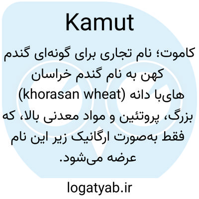 کاموت؛ نام تجاری برای گونه‌ای گندم کهن به نام گندم خراسان (khorasan wheat) با دانه‌های بزرگ، پروتئین و مواد معدنی بالا، که فقط به‌صورت ارگانیک زیر این نام عرضه می‌شود.