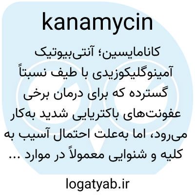 📌 یک آنتی‌بیوتیک آمینوگلیکوزیدی وسیع‌الطیف، C18H35N3O10، که از باکتری خاک ژاپنی Streptomyces kanamyceticus جدا شده و در درمان عفونت‌ها، به‌ویژه عفونت‌های ناشی از باسیل‌های گرم منفی، استفاده می‌شود.