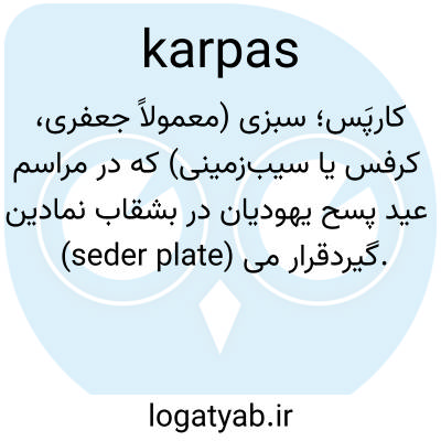 📌 تکهای از جعفری، کرفس یا سبزیجات سبز مشابه که در آب نمک فرو برده میشود و در وعده غذایی سدر در عید فصح خورده میشود.
