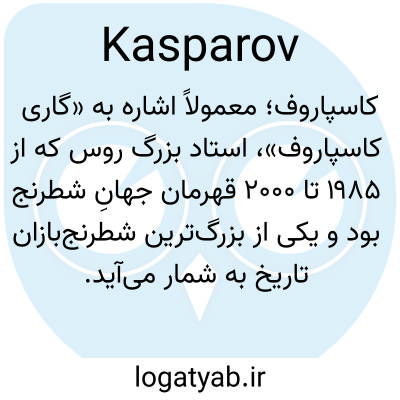 کاسپاروف؛ معمولاً اشاره به «گاری کاسپاروف»، استاد بزرگ روس که از ۱۹۸۵ تا ۲۰۰۰ قهرمان جهانِ شطرنج بود و یکی از بزرگ‌ترین شطرنج‌بازان تاریخ به شمار می‌آید.
