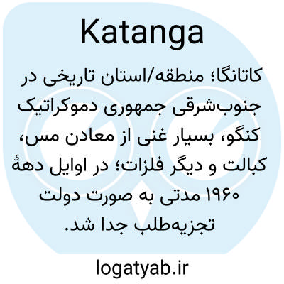 کاتانگا؛ منطقه/استان تاریخی در جنوب‌شرقی جمهوری دموکراتیک کنگو، بسیار غنی از معادن مس، کبالت و دیگر فلزات؛ در اوایل دههٔ ۱۹۶۰ مدتی به صورت دولت تجزیه‌طلب جدا شد.