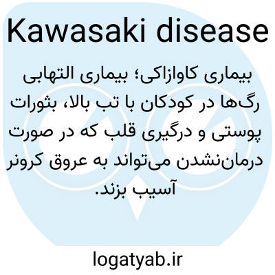 بیماری کاوازاکی؛ بیماری التهابی رگ‌ها در کودکان با تب بالا، بثورات پوستی و درگیری قلب که در صورت درمان‌نشدن می‌تواند به عروق کرونر آسیب بزند.
