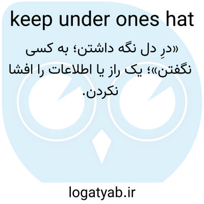 📌 رازداری چیزی را حفظ کردن، مانند «اگر قول بدهی آن را زیر کلاهت نگه داری، در موردش به تو خواهم گفت». این کاربرد به پنهان کردن رازی در سر، پوشیده شده با کلاه، اشاره دارد. [اواخر دهه ۱۸۰۰]