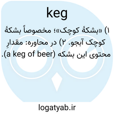 ۱) «بشکهٔ کوچک»؛ مخصوصاً بشکهٔ کوچک آبجو. ۲) در محاوره: مقدارِ محتوی این بشکه (a keg of beer).