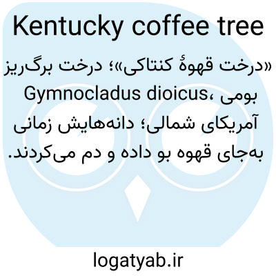 📌 درختی بلند در آمریکای شمالی، به نام ژیمنوکلادوس دیوئیکا، از خانواده حبوبات، که دانههای آن قبلاً به عنوان جایگزینی برای دانههای قهوه در کنتاکی استفاده میشد.