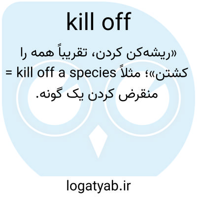 «ریشه‌کن کردن، تقریباً همه را کشتن»؛ مثلاً kill off a species = منقرض کردن یک گونه.