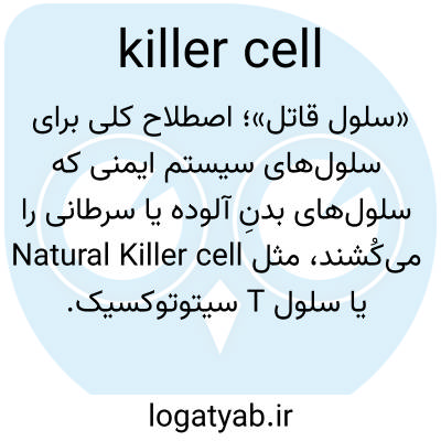 📌 هر یک از چندین نوع لنفوسیت یا لکوسیت که قادر به تخریب سلولهایی هستند که ویژگیهای خارجی مانند سلول تومور یا سلول آلوده به ویروس را کسب کردهاند.