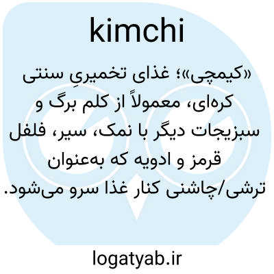 📌 آشپزی کرهای، ترکیبی تند و ترشی یا تخمیر شده حاوی کلم، پیاز و گاهی ماهی، که با چاشنیهای مختلفی مانند سیر، ترب کوهی، فلفل قرمز و زنجبیل طعمدار میشود.