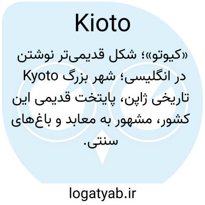 «کیوتو»؛ شکل قدیمی‌تر نوشتن Kyoto در انگلیسی؛ شهر بزرگ تاریخی ژاپن، پایتخت قدیمی این کشور، مشهور به معابد و باغ‌های سنتی.