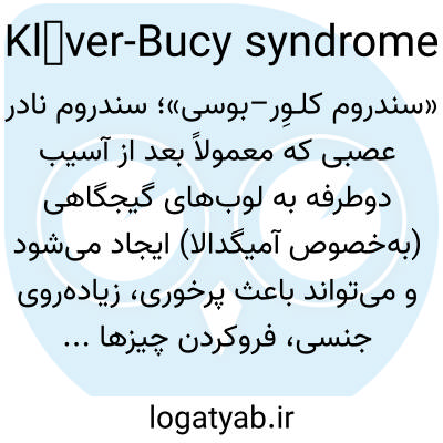 📌 سندرمی که در اثر آسیب دو طرفه به لوب‌های گیجگاهی ایجاد می‌شود و با نقص حافظه، فزون‌خواهی جنسی، رفتار دهانی بیش از حد و کاهش واکنش‌های ترس مشخص می‌شود.