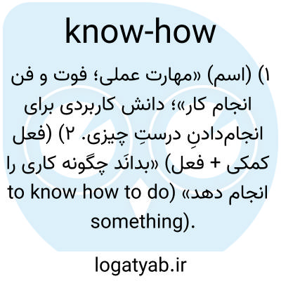 ۱) (اسم) «مهارت عملی؛ فوت و فن انجام کار»؛ دانش کاربردی برای انجام‌دادنِ درستِ چیزی. ۲) (فعل کمکی + فعل) «بدانَد چگونه کاری را انجام دهد» (to know how to do something).