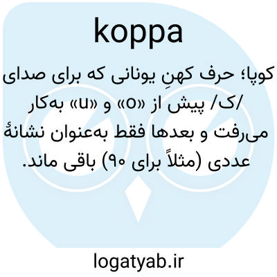📌 حرفی (،) در برخی از الفباهای اولیه یونانی، که بین پی و رو قرار دارد و معادل Q لاتین است: بعدها کاپا جایگزین آن شد، به جز اینکه به عنوان عددی برای ۹۰ استفاده میشود.