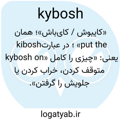 «کایبوش / کای‌باش»؛ همان kibosh؛ در عبارت «put the kybosh on» یعنی: «چیزی را کامل متوقف کردن، خراب کردن یا جلویش را گرفتن».
