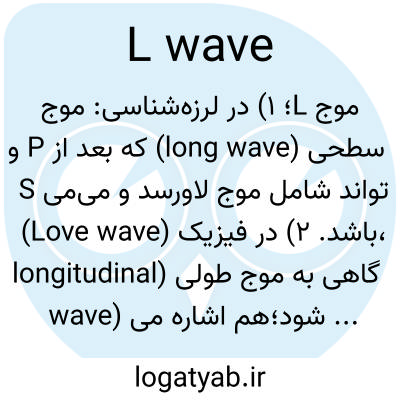 موج L؛ ۱) در لرزه‌شناسی: موج سطحی (long wave) که بعد از P و S می‌رسد و می‌تواند شامل موج لاو (Love wave) باشد. ۲) در فیزیک، گاهی به موج طولی (longitudinal wave) هم اشاره می‌شود؛ معنی دقیق بسته به متن است.