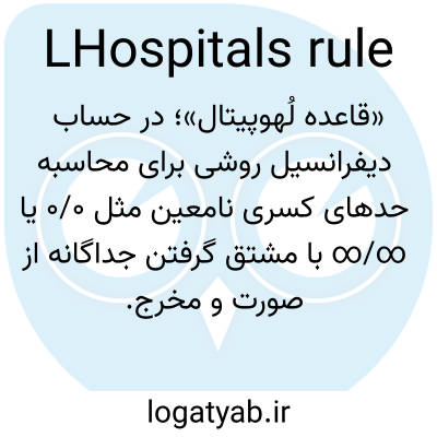 «قاعده لُهوپیتال»؛ در حساب دیفرانسیل روشی برای محاسبه حدهای کسری نامعین مثل ۰/۰ یا ∞/∞ با مشتق گرفتن جداگانه از صورت و مخرج.