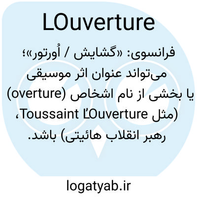 فرانسوی: «گشایش / اُورتور»؛ می‌تواند عنوان اثر موسیقی (overture) یا بخشی از نام اشخاص (مثل Toussaint L’Ouverture، رهبر انقلاب هائیتی) باشد.